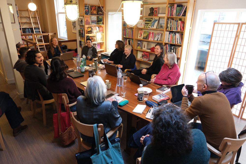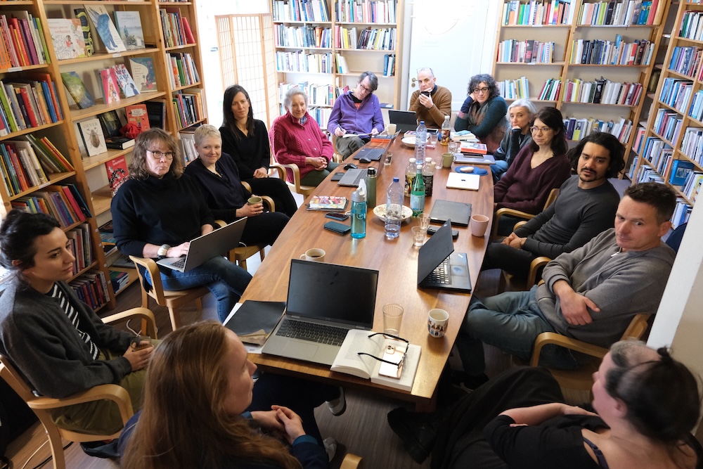 Het succes van Oroppa van Safae el Khannoussi is ook in het buitenland niemand ontgaan. Volgens de vertalingendatabase van het Nederlands Letterenfonds staan twaalf vertalingen in de planning voor 2026. Elf van deze vertalers verblijven deze week in het Vertalershuis in Amsterdam om met elkaar te praten over de problemen waar ze tegenaan lopen. Afgelopen woensdag ontmoetten Aino Roscher (Deens), Chiara Nardo & Claudia di Palermo (Italiaans), Francoise Antoine (Frans), Gonzalo Fernandez (Spaans), Laia Fabregas (Catalaans), Mari Janatuinen (Fins), Olov Hyllienmark (Zweeds), Shimanto Robin Reza (Engels), Stefanie Ochel (Duits) en Szabolcs Wekerle (Hongaars) de auteur en haar redacteur Evi Hoste (Pluim). Foto's zijn van Teun Grondman.