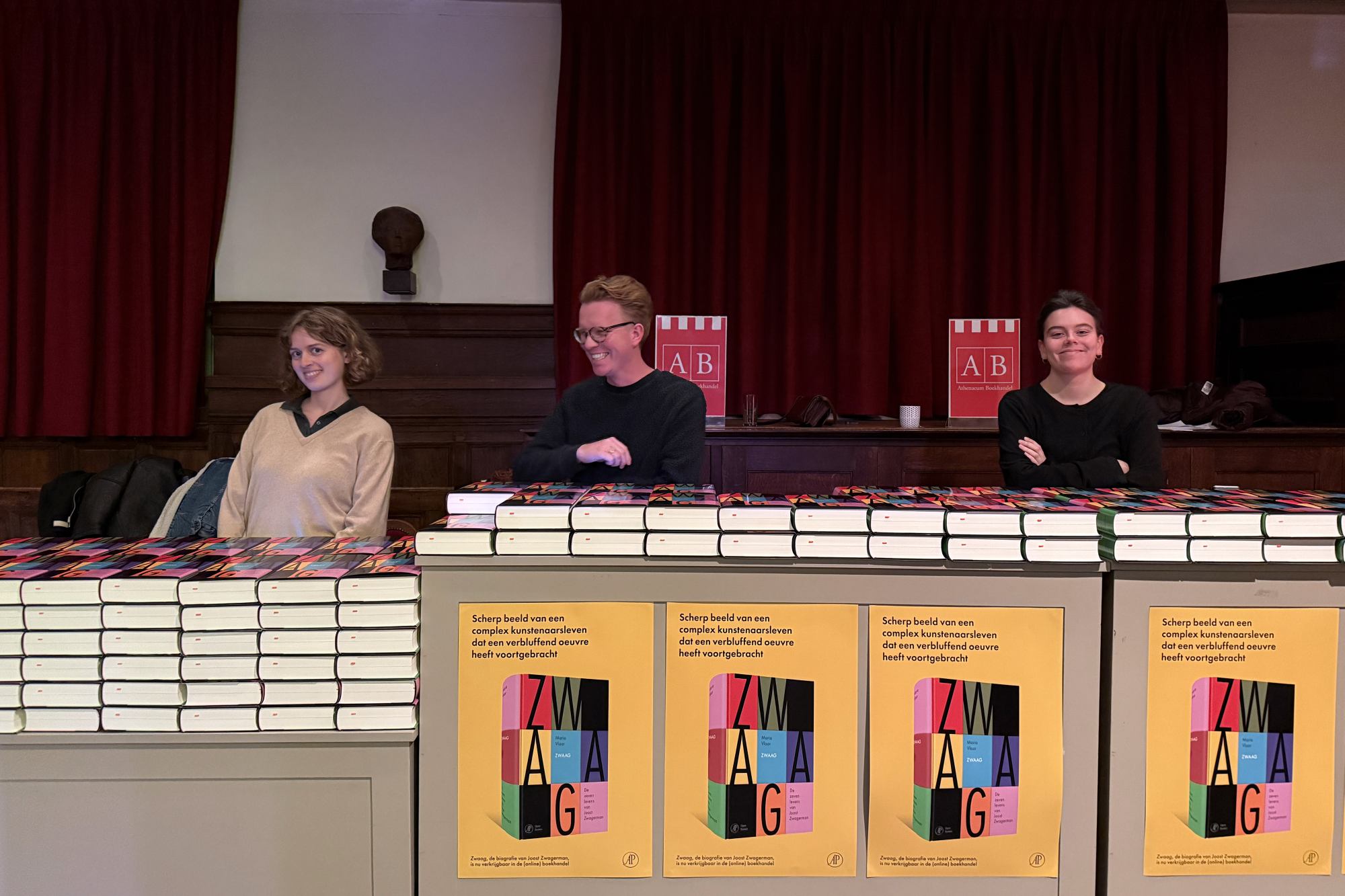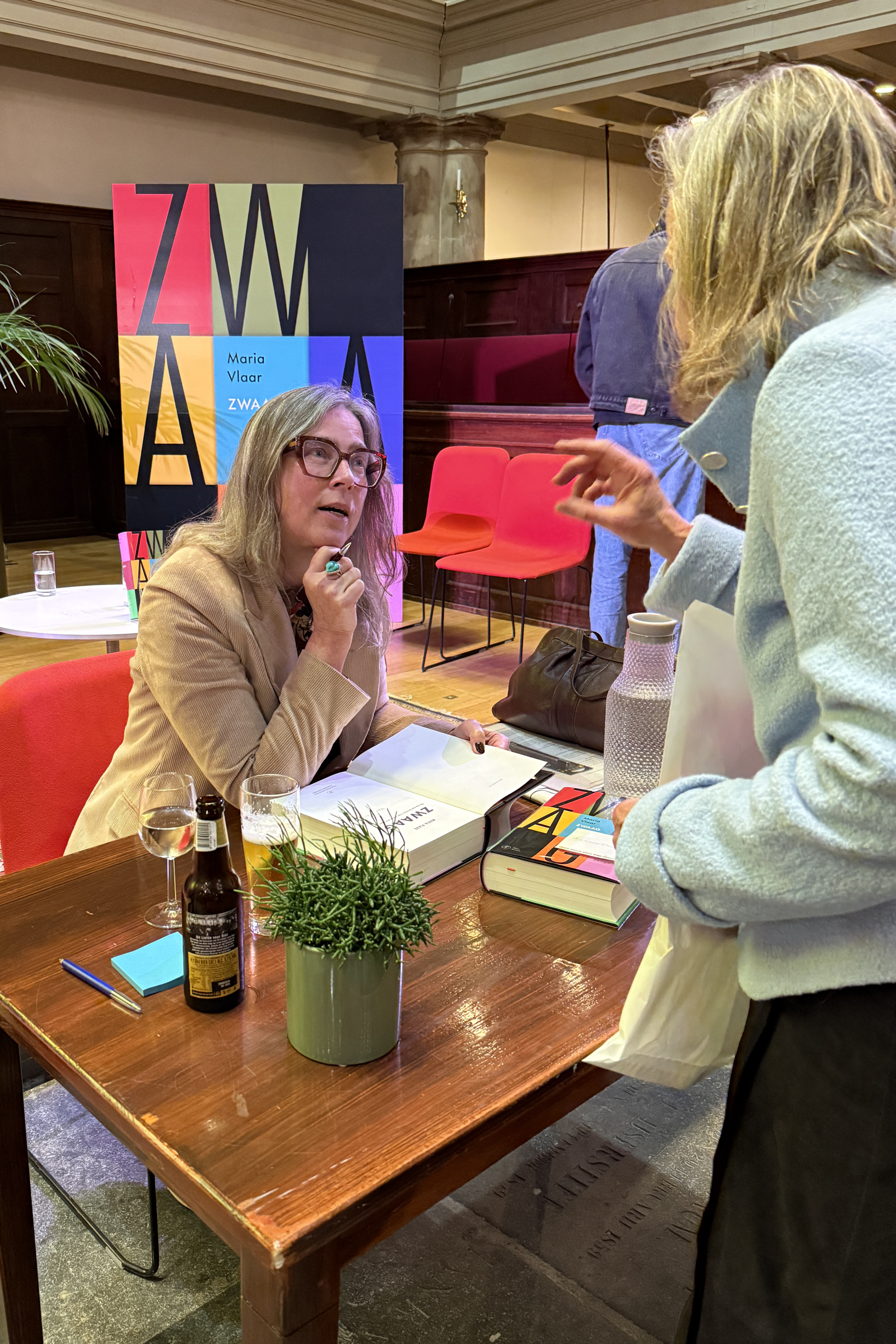 Op donderdag 27 november presenteerde uitgeverij De Arbeiderspers in samenwerking met Spui25 en Athenaeum Boekhandel de biografie van Joost Zwagerman: Zwaag. De zeven levens van Joost Zwagerman, geschreven door Maria Vlaar. De presentatie vond plaats in de Oude Lutherse Kerk in Amsterdam. Peter Nijssen, redacteur bij De Arbeiderspers, opende de avond nadat Thom Hoffman een gedicht van Zwagerman had voorgedragen. Onno Blom presenteerde de avond en interviewde Maria Vlaar, waarna zij met Jessica Durlacher, Pieter Boskma en Pieter Bijwaard in gesprek ging. Zij namen ook de symbolisch eerste exemplaren in ontvangst, samen met Harald Vlugt en Koos Dalstra. (Foto's Gerlinde de Geus)